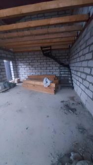 планировался на 4 образно семьи, у каждой части дома свой выход и 2й этаж. Дом поделен на 4 равные, одинаковые части, отдельные друг от друга. можно соединить или сделать проходы.