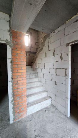 - Надежная конструкция: монолитная плита фундамента 300 мм на 6-метровых сваях, стены — пеноблок 400 мм, ж/б перекрытия.