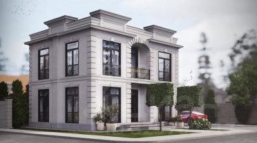Утепленный фасад (150 мм), штукатурка выполнена частично.