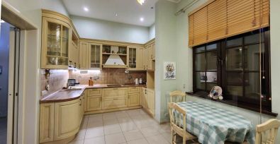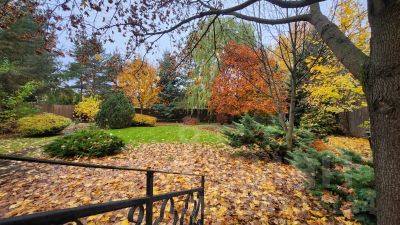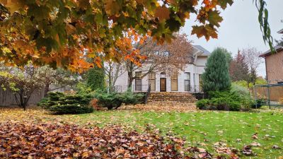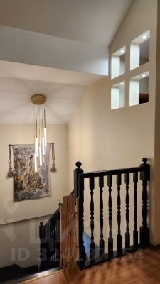 Ухоженная территория радует глаз живописными прогулочными дорожками из натурального камня, изысканным ландшафтным дизайном с декоративными деревьями и кустарниками, площадкой под бассейн и отдельной зоной барбекю. Наружное освещение создает атмосферу уюта и безопасности. Аккуратный газон приглашает к отдыху на свежем воздухе. Территория находится под охраной.