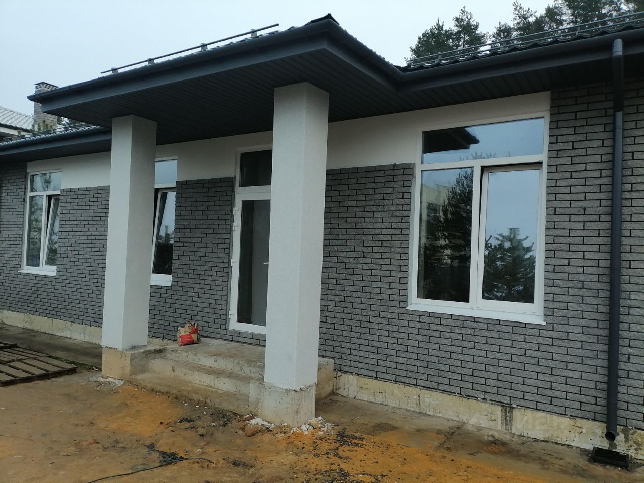 Ливневка, водосточка, утеплённая отмостка, забор по периметру с выходом в лес.