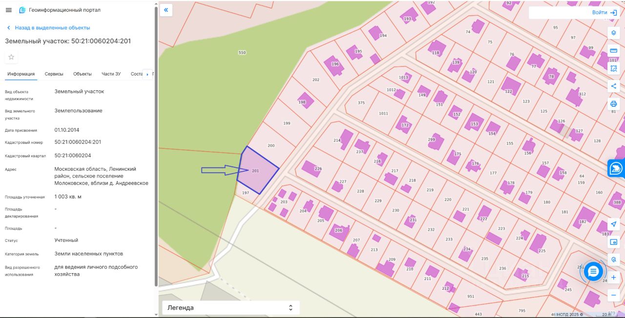 Продается земельный участок по адресу: Московская область, Ленинский городской округ, деревня Андреевское, улица Рябиновая вблизи дома 162. Участок с кадастровым номером: 50:21:0060204:201 имеет площадь 10,03 сотки и продается совместно с прилегающим к нему участком с кадастровым номером 50:21:0060204:197 площадью 2,63 сотки. Общая площадь двух участков составляет 12,66 с. Общая стоимость 8 862 000 р. Возможно перераспределение площади участков.