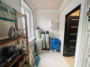 Дом построен из газосиликатных блоков с толщиной стен 400 мм и железобетонными перекрытиями. Теплый пол и металлочерепичная крыша с водоотводом гарантируют долговечность здания.