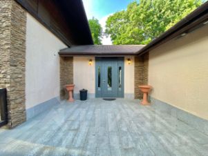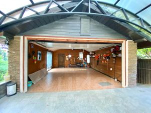 Есть тёплый гараж на 2 авто, а для размещения автомобиля нa улице, пpи въезде организована парковка (вместимость 4 авто) под стильным и прочным навесом.