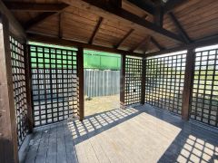 На территории участка расположен хозблок с небольшой крытой зоной отдыха на улице. На территории поселка поселка расположены гостевые парковочные места и детская площадка.