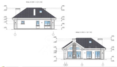 На первом этаже расположена просторная кухня-гостиная с выходом на террасу, две спальни, санузел и гардеробная.
