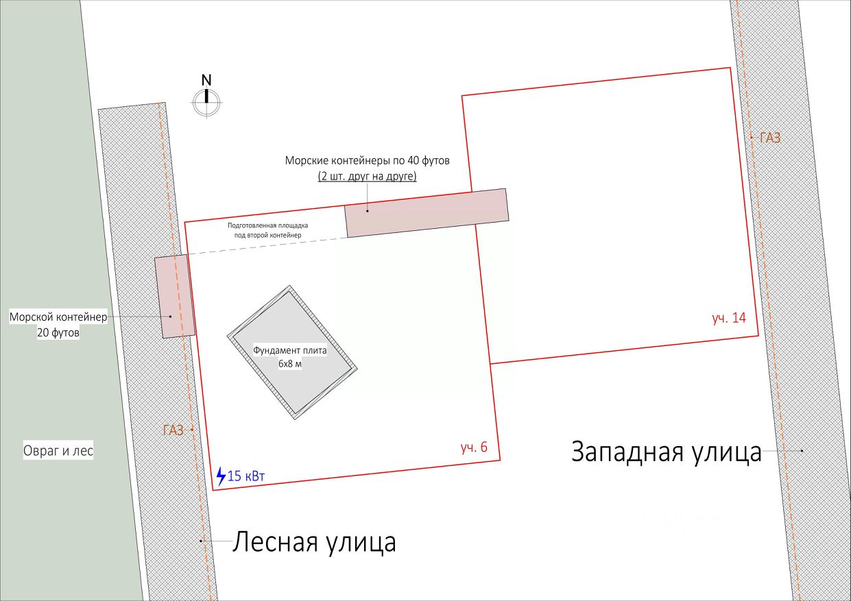 На участке размещены 2 морских контейнера: 2 шт. - 40 футов, 1 шт. - 20 футов.