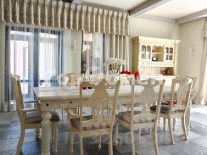 На первом этаже расположены: холл, столовая с камином, 2 кухни, кабинет-библиотека, 4 спальни, зимний сад, 2 с/у. На втором этаже - 6 спален, 2 ванные комнаты. В цокольном этаже - бассейн, зона отдыха, спортивные зоны, кладовые, постирочные, гардеробные, бойлерная.
