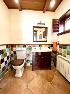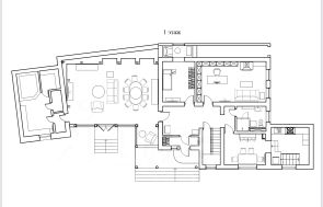1-й этаж: прихожая , коридор, кухня- столовая, кабинет, спальня, 2 санузла, гостиная с камином, баня, бассейн, коменданта отдыха.