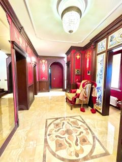 Дом полностью мебелирован и оборудован всей техникой ,состояние идеальное, ручная роспись стен, дизайнерский ремонт, чугунные декоративные батареи, шикарная лестница, мебель вся заказная эксклюзивная, на участке ландшафтный дизайн, пруд с рыбками , чайный домик с открытым патио, декоративные кустарники и деревья, теплый гараж на 3 машины ( мастерская) , дом для охраны и персонала с 2-мя жилыми комнатами и всеми удобствами, зона барбекю и зоны отдыха., вальер для собаки.
