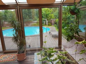 - Бассейн во дворе и собственный ландшафтный дизайн с многолетними породами деревьев.
