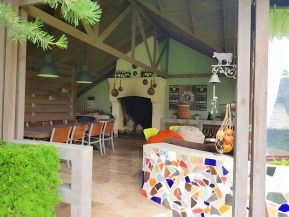 - Летняя кухня с камином и зоной барбекю, собственная беседка для праздников.