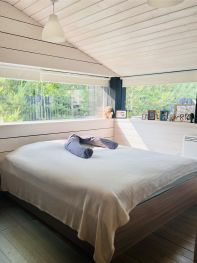 3. Интерьер для себя. Светлое дерево, высокие потолки. Вся мебель и техника покупались с любовью и почти всё остаётся в доме. Эксплуатация — всего 4 года.