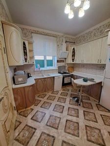 Кухонный гарнитур со всей необходимой техникой: газовая плита с духовкой, вытяжка, микроволновая печь, холодильник, дополнительный морозильник, посудомоечная машина, стиральная машина.