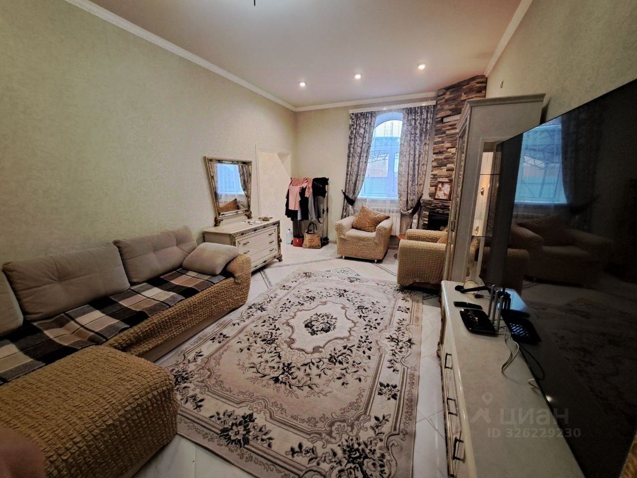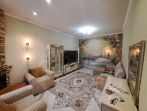 Есть возможность скомплектовать двумя детскими кроватями-машинами, мебель и техника остаются Интерьер дополняют люстры, прикроватные светильники, тюль, шторы. Телевизор Samsung (диагональ 85 дюймов), интернет на двух этажах. Высокие потолки (3,5 м).
