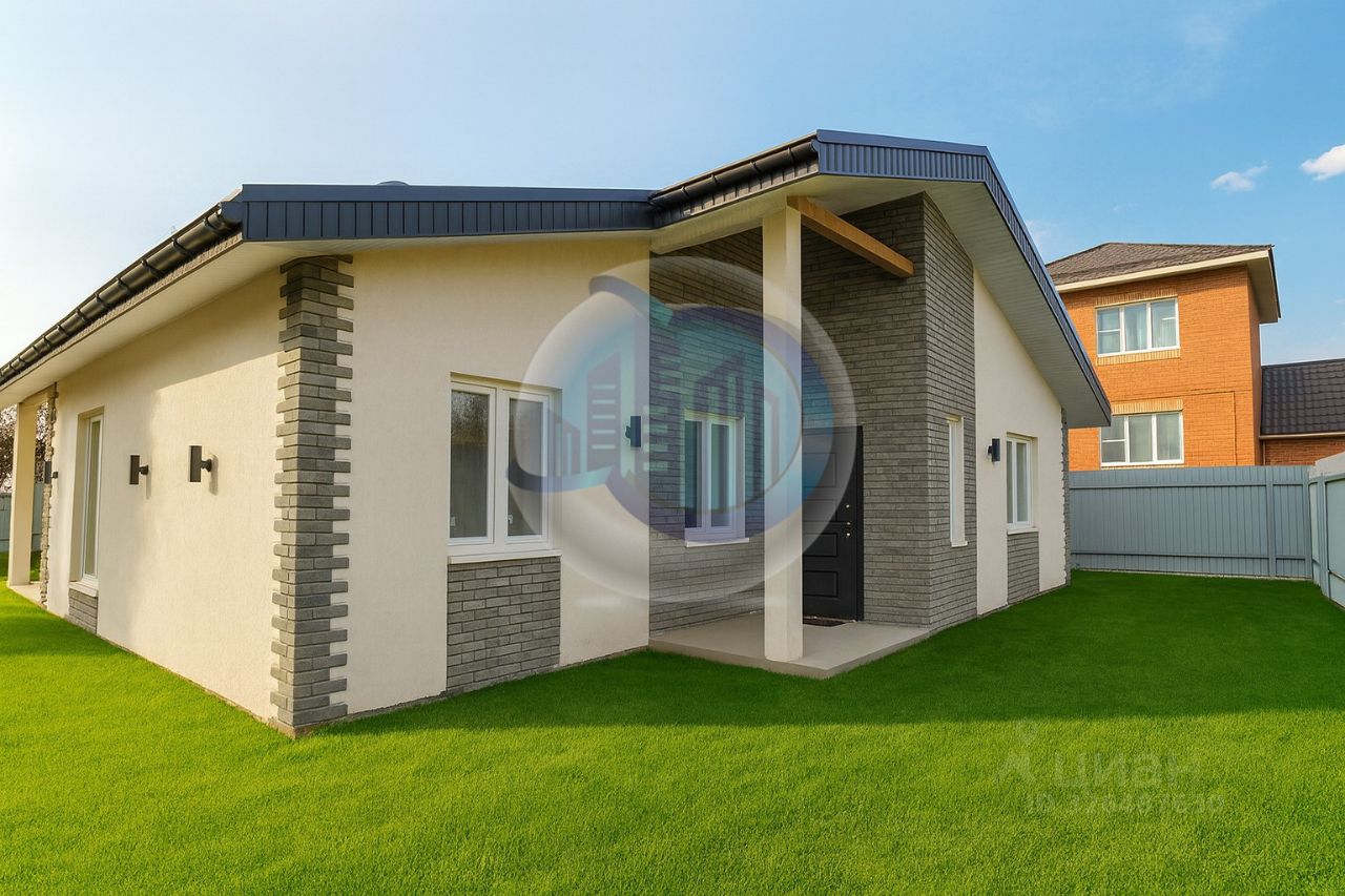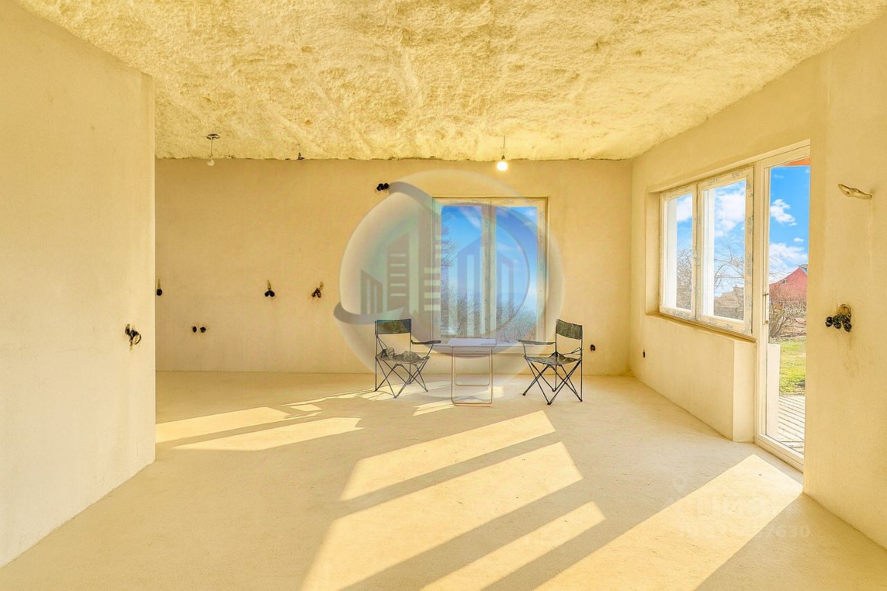 Дом с предчистовой отделкой. Отопление, вентиляция, все коммуникации заведены и подключены, штукатурка. Не входит финишная штукатурка, ламинат/плитка, обои, санузел, потолки. При желании можно договориться о полной готовности дома. .Материал стен — блоки. Фундамент — плита (200 мм), утепление кровли — 150.
