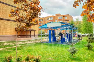 На территории детская и спортивная площадки, детский сад, несколько