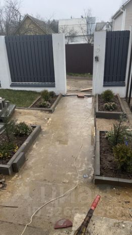 По периметру установлен забор, ворота, парковка на 2 авто, дорожки. На участке уложен рулонный газон, сделана отмостка, дренажный колодец. Растут туи, сосны, гартензии.