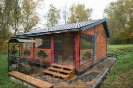 дровяной баней, гаражом и навесом под авто на участке, по границе с лесом, свой выход