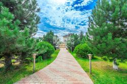 - ухоженная территория с ландшафтным дизайном.