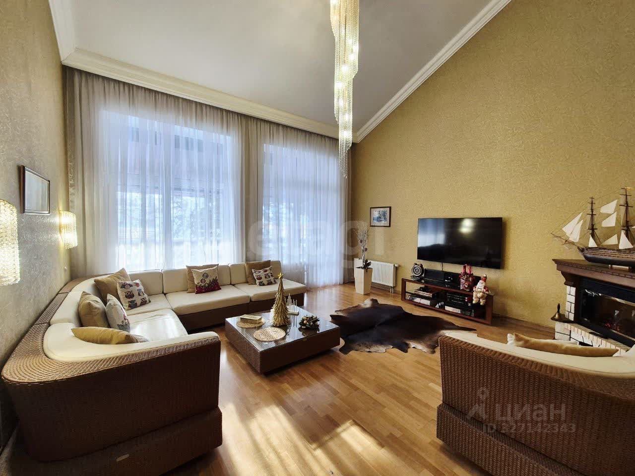 - точка притяжения светлая ГОСТИНАЯ С КАМИНОМ и панорамным выходом на ТЕРРАСУ. Благодаря высоте потолков 6,5 метров здесь царит ощущение простора.