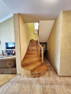 На ВТОРОЙ этаж ведет красивая деревянная лестница, которая не скрипит и не будит хозяев, так как основа из бетона.