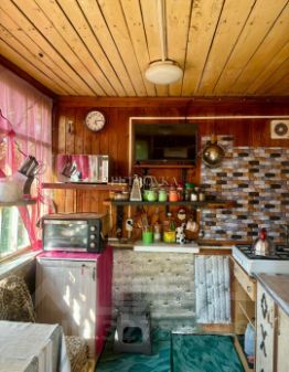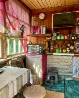 На участке расположен жилой дом общей площадью 72,5 кв. м, возведенный в 1960-х годах. Конструкция представляет собой одноэтажный сруб с мансардным уровнем и наружной отделкой сайдингом, имеющий два независимых входа.