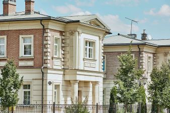К дому будут подключены коммуникации: электричество (15 кВт), водопровод скважина, канализация септик. Участок огорожен по фасаду в единой стилистике коттеджного посёлка.