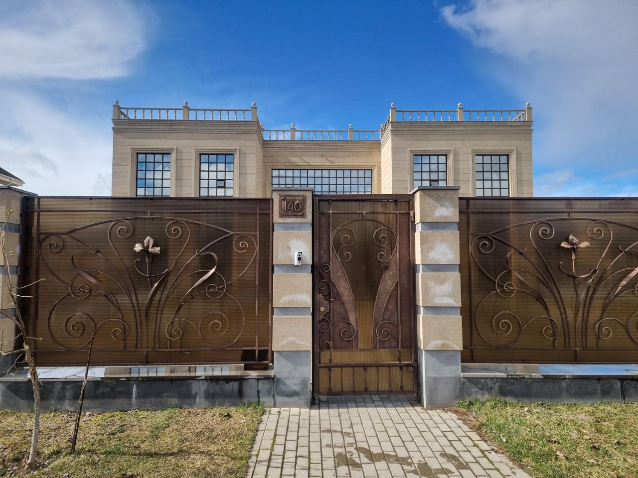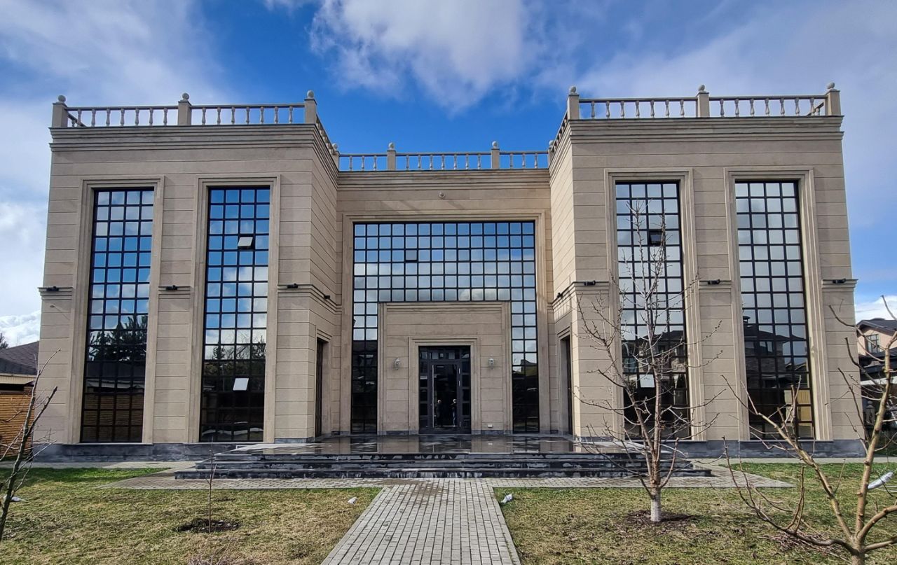 Фасад дома облицован фельзитом из Армении. Площадка перед домом вымощена базальтом. На участке растут 30 фруктовых деревьев.