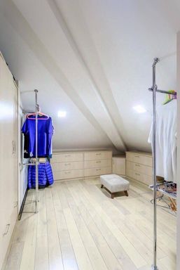 В мансардном этаже две гардеробные, две спальни и санузел.