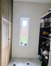 На втором этаже 4 спальни, санузел с ванной с теплыми полами, гардеробная, балкон. В одной из комнат (комната с картой Земли) часть стены покрашена магнитно-маркерной краской, эту комнату удобно сделать детской или кабинетом.