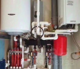 Электричество 15 квт. Отопление от газового котла, есть резервный электрокотел, газоснабжение — газгольдер, в перспективе планируется подведение магистрального газа, водоснабжение и канализация — центральные поселковые. Установлен бойлер на 150 л в доме и 80 л в бане.