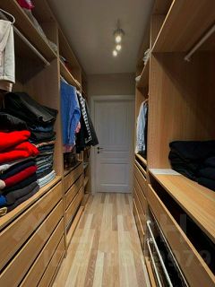 - Второй этаж: Наверх ведет красивая лестница, оборудованная умными датчиками движения (подсветка включается автоматически). На втором этаже расположены 4 просторные жилые комнаты и отдельная большая, очень вместительная гардеробная. Для максимального комфорта в *каждой* комнате дома уже установлен телевизор.\
