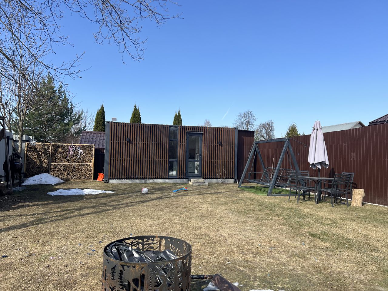 Дом-контейнер ценой 1350000 р. оборудован для круглогодичного проживания ( теплые полы,эл.котел,3 радиатора,бойлер),в доме полностью оборудованный сан узел (туалет,раковина,душевая кабина),полностью оборудованная кухня(раковина,варочная панель),спальня;