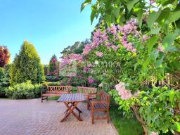 Участок 30,49 соток огорожен капитальным забором с автоматическими воротами. Великолепно выполнен ландшафтный дизайн. Зеленые газоны, дорожки. На участке растут вековые сосны, много красивых туй, декоративных кустарников и цветов. Фруктовый сад. На участка теплица и маленький огородик "для души" и свежей зелени, утепленный двойной вольер, площадка на 8 авто.
