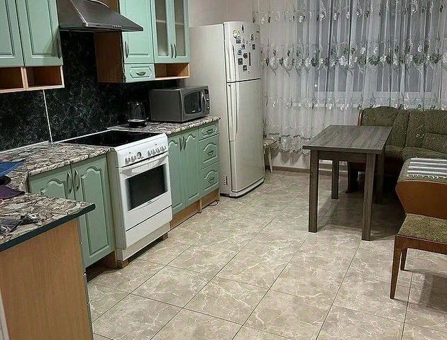 Сдаётся евро-двушка Квартира состоит из: * просторной светлой комнаты; * маленькой детской комнаты (можно использовать как рабочий кабинет); * большой кухни с диваном и телевизором. В квартире есть вся необходимая техника: * плита; * духовой шкаф; * вытяжка; * микроволновка; * холодильник; * телевизор; * стиральная машина; * утюг; * гладильная доска.