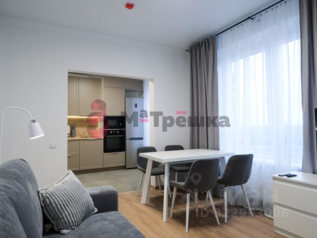 В квартире выполнен свежий ремонт в современном стиле. Она полностью меблирована и оборудована всей необходимой бытовой техникой, включая холодильник, варочную панель, духовку, вытяжку, посудомоечную и стиральную машины, телевизоры 2 шт, один расположен в гостиной, а второй куплен, но не повешен, пока что в коробке стоит. Кухня площадью 10 кв.м. плавно переходит в светлую гостиную. Два санузла, один из которых с окном, оборудованный ванной и стиральной машиной, второй скорее как гостевой, где только унитаз и раковина. Также предусмотрена темная комната (гардероб) для хранения вещей.