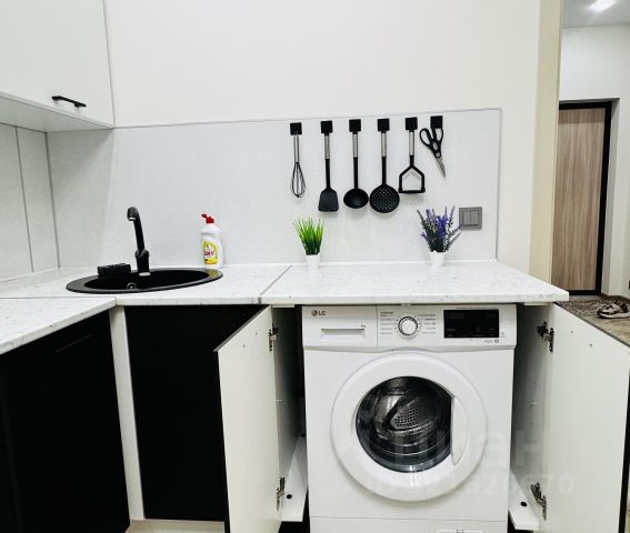 В маленьком санузле раковина, стиральная машина Wрirlpool, загрузка 7 кг, унитаз чаша Генуя (напольный), гигиенический душ