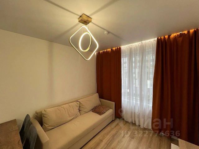 В гостиной кондиционер, скрытая зона для кабинета с готовым компьютерным столом, подвесная тумба на 4 ящика, раскладной диван, Интернет, окна во двор, восточная сторона