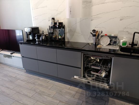 На кухне встроенная посудомоечная машина 60 см, которая нормально моет, большой холодильник, духовка — электрическая, варочная — индукционная.