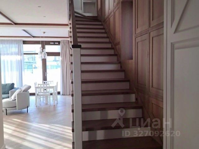 Интерьер внутреннего пространства основного дома выполнен в спокойной цветовой гамме и благородных тонах. Дом оснащён мебелью и бытовой техникой ведущих производителей, на кухне и в санузлах полы с подогревом, оборудована водоочистная система, приточно-вытяжная вентиляция, охранная сигнализация, установлены защитные электророллеты на террасе и на вход в дом. Подключены все центральные коммуникации: электричество 50 кВт, магистральный газ, центральная канализация и водопровод.