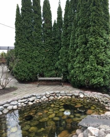 Участок благоустроен: высажены хвойные и лиственные деревья, организовано вечернее освещение. При строительстве использовались исключительно дорогие и экологически чистые материалы. В котельной установлен мощный котел Viessmann и современная система водоочистки, все коммуникации центральные.