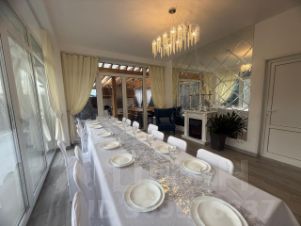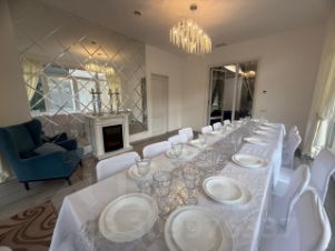 — Кухонная зона: холодильник, посудомойка, микроволновка, чайник, набор посуды на 8-10 персон , индукционная плита, духовка, чай, кофе, сахар и т д
