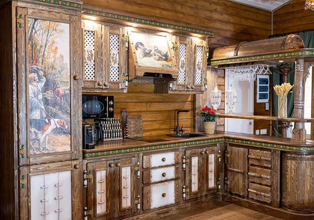 На первом этаже гостиная с кухней, санузел и маленькая баня. В гостиной располагается раскладной стол, раскладной диван, телевизор - смарт, музыкальный центр, кондиционер, дровяной камин, беспроводной интернет. Кухня наполнена всем необходимым, посуда для приготовления и сервировки, холодильник, варочная плита с духовкой, микроволновая печь, бутыль 20л с питьевой водой. На втором этаже размещаться изолированная спальня с двумя двуспальными кроватями, атак же двуспальная кровать в открытой лаундж-зоне.