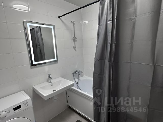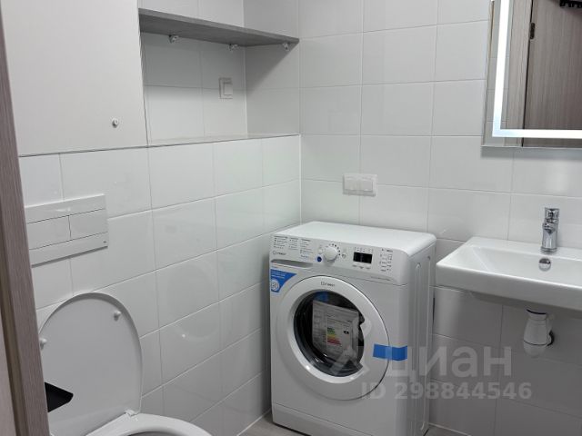В санузле: стиральная машина, раковина, душевая кабина, унитаз,полотенцесушитель, встроенная вытяжка, зеркальный шкаф и прочие аксессуары.