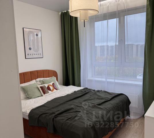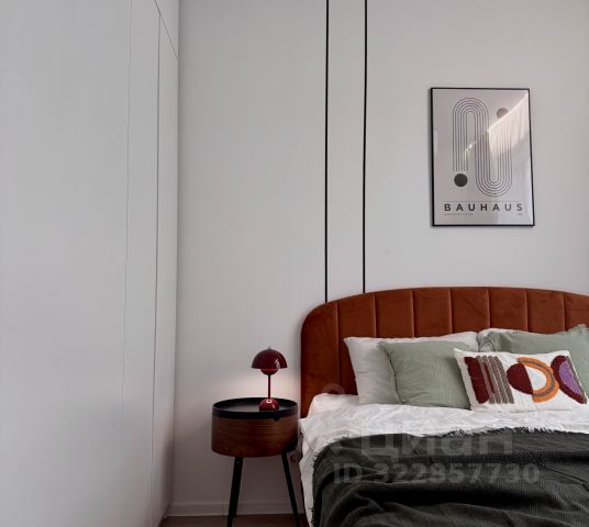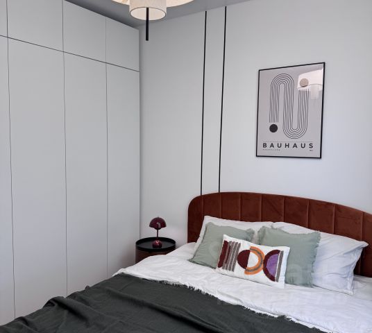 Спальня с кроватью 200х220 см, высота 80 см, с подвесными прикроватными тумбочками, подвесная тумба на 3 ящика, кондиционер, окна на Москву, западная сторона