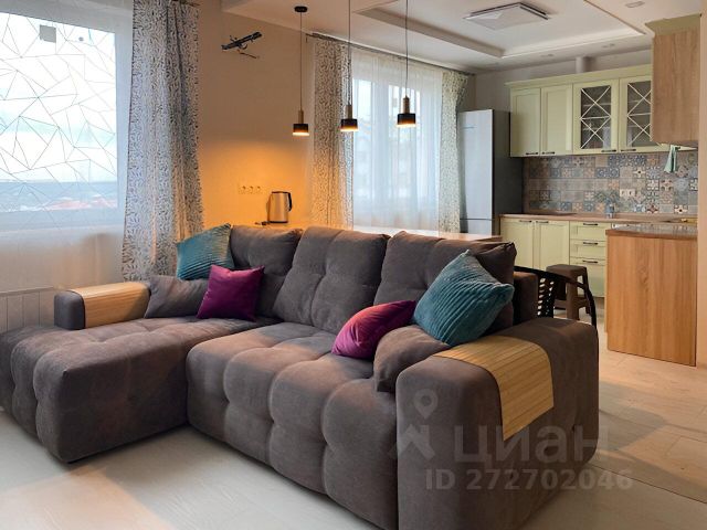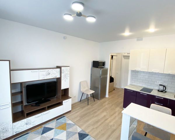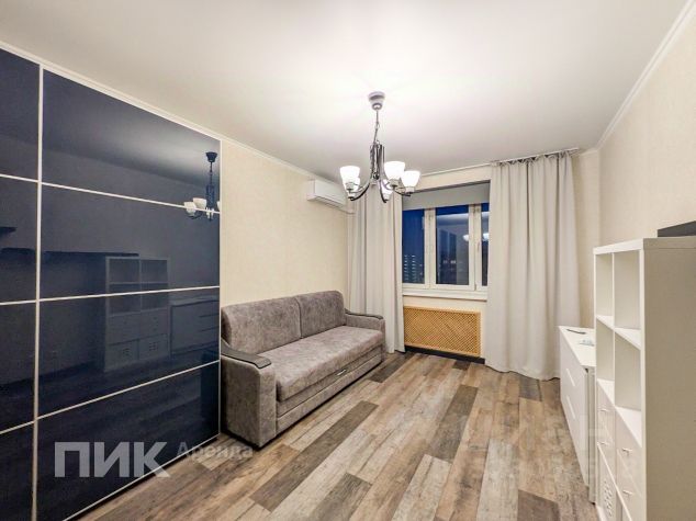В гостиной кондиционер, скрытая зона для кабинета с готовым компьютерным столом, подвесная тумба на 4 ящика, раскладной диван, Интернет, окна во двор, восточная сторона