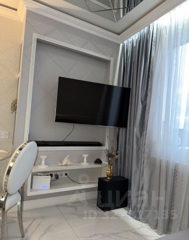 В гостиной кондиционер, скрытая зона для кабинета с готовым компьютерным столом, подвесная тумба на 4 ящика, раскладной диван, Интернет, окна во двор, восточная сторона