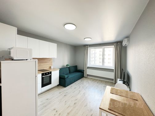 Предлагается в аренду отличная студия с новым ремонтом. Всё подобрано и исполнено с вниманием к деталям и функциональности, полный комплект необходимой мебели и бытовой техники, всё абсолютно новое, сдаётся впервые. Кухня оборудована современным гарнитуром со встроенной варочной панелью и духовым шкафом, двухкамерный холодильник, микроволновка и электрочайник. Есть полный набор посуды для сервировки и готовки. Большой диван, раскладывающийся в спальное место, большой телевизор и кондиционер, шторы блэк аут. В коридоре вместительный шкаф с зеркалами. Санузел с душевой кабиной и стиральной машинкой. Также есть полный набор мелкой техники: пылесос, утюг, wifi роутер, гладильная доска и сушилка. Окно выходит во двор на восточную сторону. Новый дом 2025 года постройки, чистые подъезды с видеонаблюдением Рядом с домом автобусные остановки с маршрутами до метро Домодедовская, Царицыно, Аннино, до платформы электрички, и местные маршруты по Видному. Вокруг вся социальная инфраструктура, несколько сетевых супермаркетов. Сдается на длительный срок, идеально подходит для одного человека, без животных и курения. Квартира-студия в деревне Сапроново Московской области.