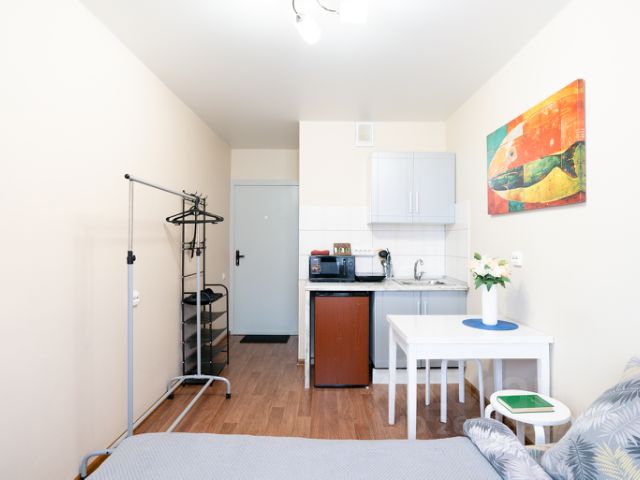 Студия от компании Rent me24 Без комиссий, профессиональная уборка, отчетные документы для юр. лиц, полный комплект, бесконтактное заселение, скидки при длительном проживании, транспортная доступность. Почему выбирают именно нас? Без комиссий и залога Профессиональная уборка после каждого гостя Отчётные документы для командировочных Полный комплект — берите с собой только хорошее настроение! Бесконтактное заселение в удобное время Скидки при длительном проживании ЖК бизнес-класса с европейской архитектурой Историческая усадьба Суханово в 10 минутах ходьбы О квартире Представляем уютную студию в невероятно приятном ЖК Государев дом — жилом комплексе бизнес-класса с красивой европейской архитектурой. В продуманном пространстве с комфортом разместятся до 2 гостей. Квартира полностью готова к проживанию и оборудована всем необходимым. Что вас ждет Для комфортного сна и отдыха: -- Анатомический матрас -- Свежее постельное бельё и полотенца высокого качества -- Одноразовые тапочки и наборы для чистки зубов Кухня и техника: -- Плита, микроволновая печь, холодильник -- Полный набор посуды и столовых приборов -- Приветственный набор: чай, кофе, сахар, специи Бытовые удобства: -- Стабильный Wi-Fi и телевизор со Smart TV -- Стиральная машина -- Утюг и гладильная доска -- Фен, шампунь, мыло Особые пожелания? Сообщите менеджеру заранее — мы постараемся их учесть! Расположение и транспорт Станция Расторгуево и МЦД — 10 минут езды Метро Аннино, Бульвар Дмитрия Донского — 20 минут на маршрутках До центра Москвы (Красной площади) — 3040 минут Историческая усадьба Суханово — 10 минут пешком Парковка у дома (бесплатная и платная) Остановка ЖК Государев дом — у подъезда Инфраструктура ЖК и района: Сетевые магазины у дома — всё необходимое рядом Школа и детский сад — в одном комплексе Прогулочные аллеи — благоустроенная территория Детские и спортивные площадки — во дворе Лесной массив — чистый воздух и природа Условия проживания Время заезда и выезда: -- Заселение: с 14:00 до 23:00 -- Выезд: до 12:00 -- При ночном заезде: оплата проживания и депозита 100% Документы: -- Паспорт для всех гостей -- Электронный договор (35 минут) -- Командировочным — полный пакет отчётных документов Важные правила: Курение в квартире Шумные вечеринки Проживание без документов При нарушении правил взимается штраф Остались вопросы? Пишите! Наши менеджеры с радостью помогут вам и ответят на все вопросы. Ждём вас в гости!